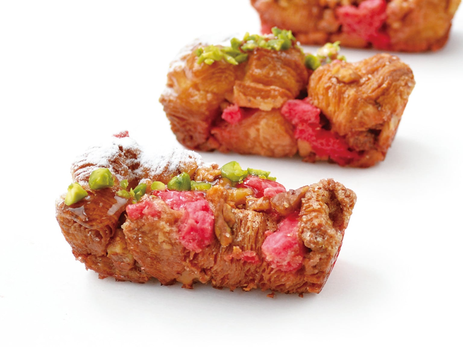 赤い色素を加えたシロップでアーモンドをキャラメリゼして砕きました。サヴォワ地方のパン「ブリオッシュ・サンジュニ」に欠かせない材料です。